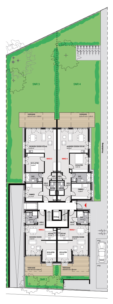 WHG 4, EG, 3-Zimmer, 1 Tageslichtbad + separaten Duschbad, Privatgarten und grosse Luxus-Terrasse
