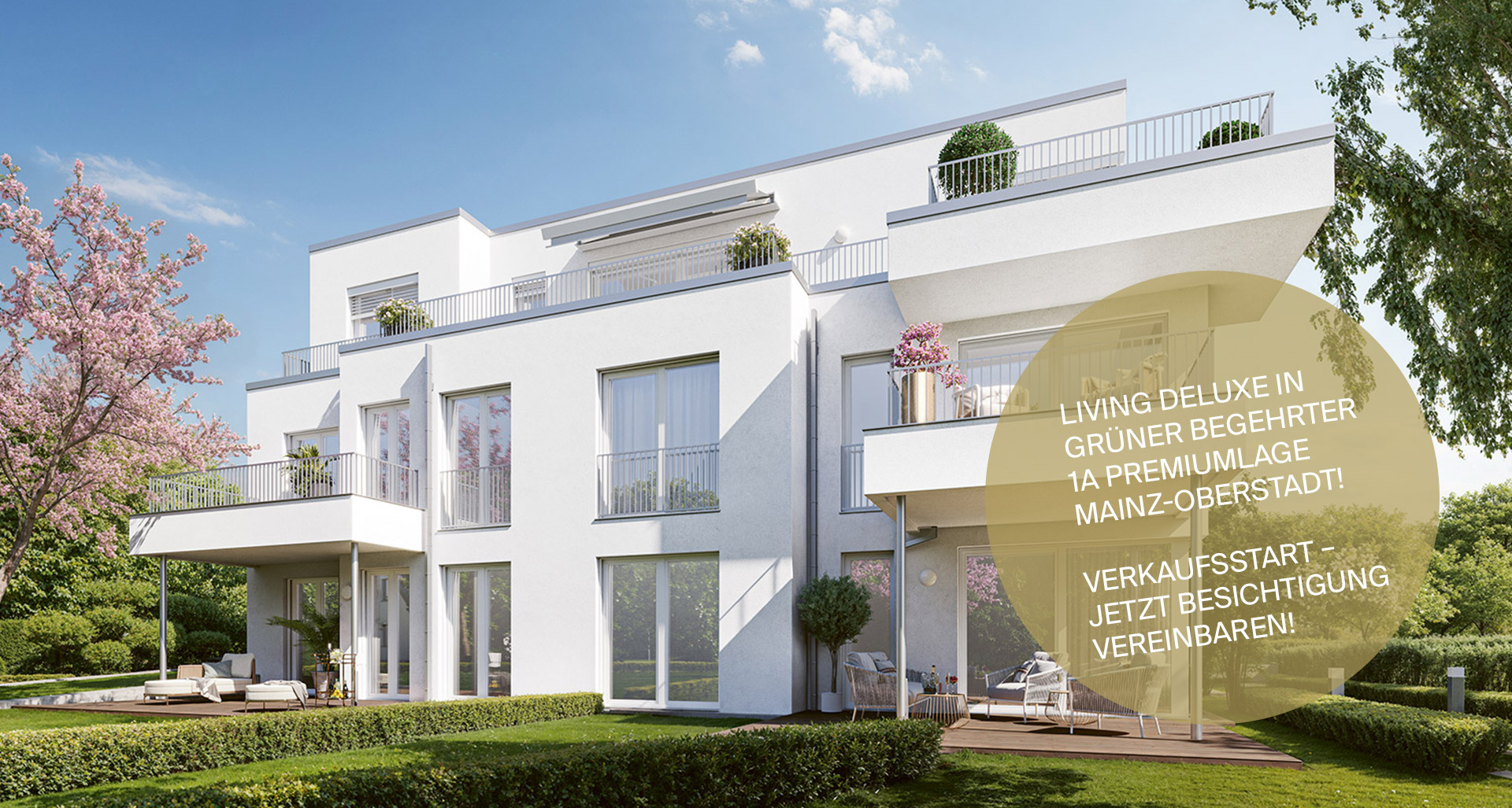 WOHNEN DE LUXE – AM UNICAMPUS! LASSEN SIE SICH VORMERKEN! UNSER EXKLUSIVES NEUBAUPROJEKT IN EINMALIGER GRÜNER 1A PREMIUMLAGE VON MAINZ-BRETZENHEIM STARTET AB SOFORT! > WEITERE INFORMATIONEN ...